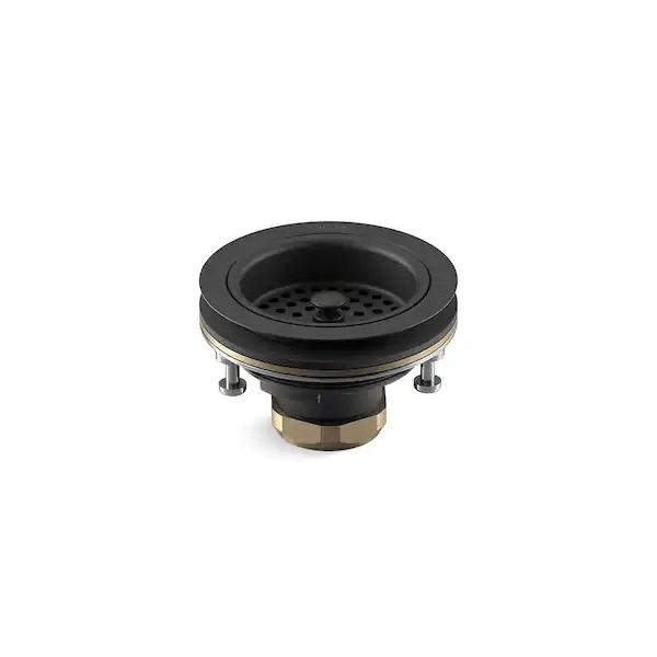This Duostrainer sink strainer features a removable basket strainer with a tightly sealing open/close stopper. It is constructed of durable, solid brass for long-lasting performance. It comes with a 1-year warranty.