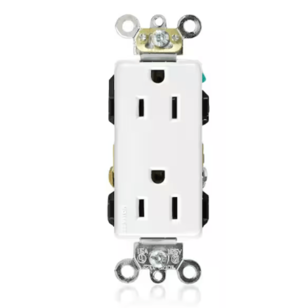 Leviton 16262-W Decora Plus 15 Amp 125 V Industrial Grade Duplex Outlet/Receptacle, White (1-Pack) 16262-W