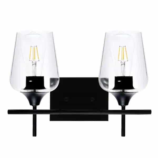 Whether your tastes are traditional, contemporary or somewhere in between, this 2-light vanity light is a perfect choice for you. It will brighten and beautify your home with their intriguing designs. The streamlined structure paired with the transparent curved glass shades showcases understated elegance. Perfect for bathroom, dining room, bedroom, living room, restaurant, coffee shop, bar, farmhouse, etc.