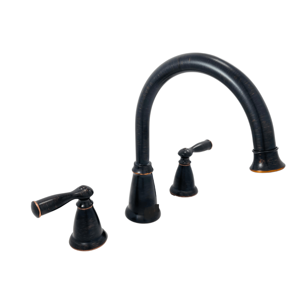 This two-handle Roman tub faucet brings a timeless, traditional design to the bathroom. With its rich bronze-style finish and high-arc spout, it offers a classic aesthetic and added clearance for comfortable use. The deck-mounted installation supports up to three holes and is suited for configurations with a 10-inch center spread. Designed to pair with complementary bath accessories for a coordinated look.