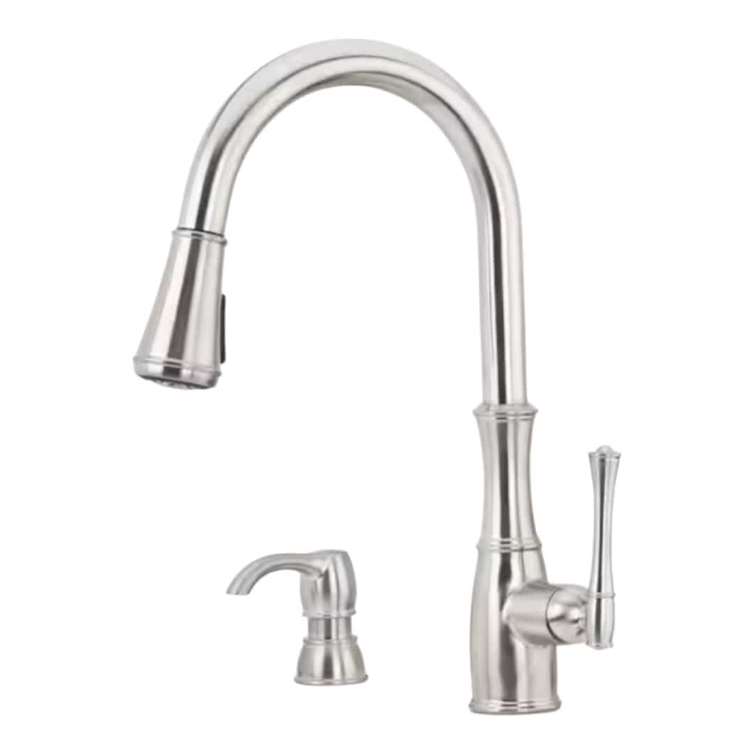 - Pull-down spray head – Features a toggle button for switching between spray and stream modes directly from the handle