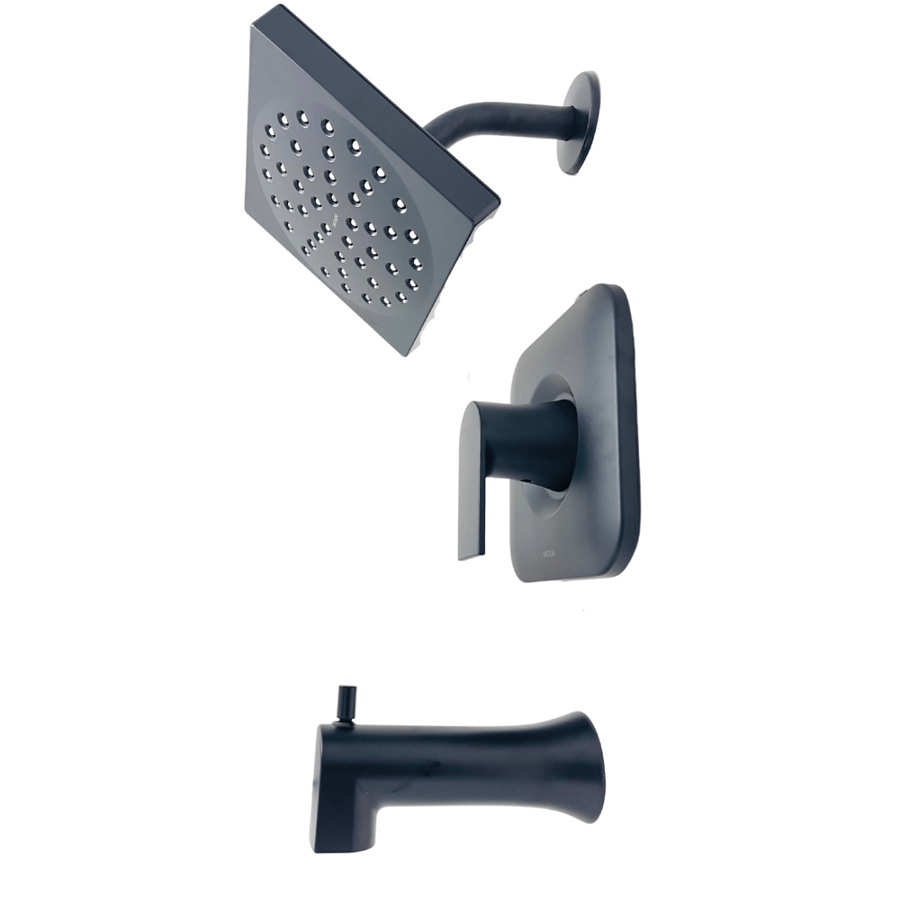 The Genta bath suite boasts contemporary, curved edges for an appealing, yet substantial style that brings a sleek feeling to the bathroom. The Genta shower trim set features a squared showerhead that compliments any modern bath decor. It also comes with a shower lever handle and tub spout. The matte black finish gives your bathroom a touch of sophistication. Gracious and uncomplicated style features give the Genta collection an ageless yet fashion-forward presence. Tailored yet relaxed, the Genta collection is an exercise in design balance.