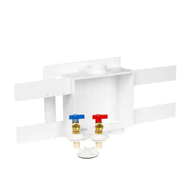 The Oatey Quadtro Washing Machine Outlet Box is made for commercial or residential applications where supply valves and waste drains are recessed into the wall. The proprietary lock and load valves enable left, right or center positioning of the drain pipe. This easy-to-install box includes all necessary support brackets to mount the water supply valves from the top or bottom. Oatey products have earned the trust of plumbing professionals for over 100 years.