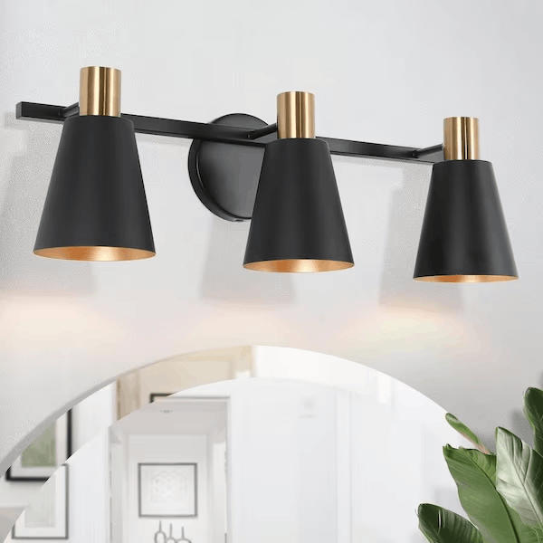 The classic black and gold bathroom vanity light of the Uolfin Lighting walks into your bathroom, not only bringing light to the house but also adding a mid-century modern charm to your bathroom. This transitional metal light combines modern and industrial elements. The black finish is mixed with golden embellishments. The horizontal bar is supported by the rounded canopy, the light holder is firm, and the shade should not be deformed. The modern vanity light creates a minimalist and modern feel. The combination of gold and black shows a unique beauty. If your bathroom or powder room is looking for such a light, this wall sconce must be a good choice. Of course, this retro wall light can be used in damp, but it is not limited to bathroom use. It can also be installed in other combinations in the room with your imagination. It is compatible with LED bulbs, for saving energy.