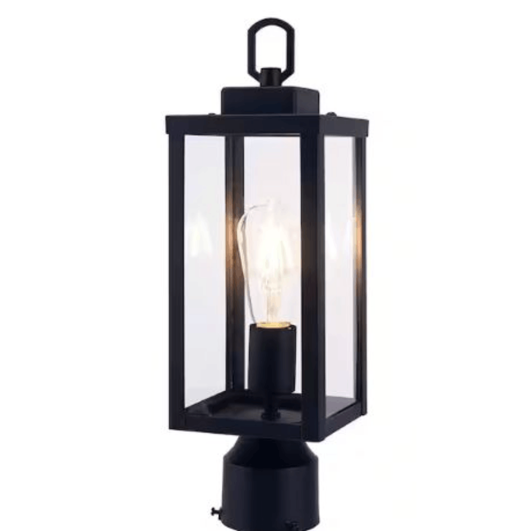 UTO-12161 1-Light Black Metal Hardwired Outdoor Weather Resistant Post Light with No Bulbs Included