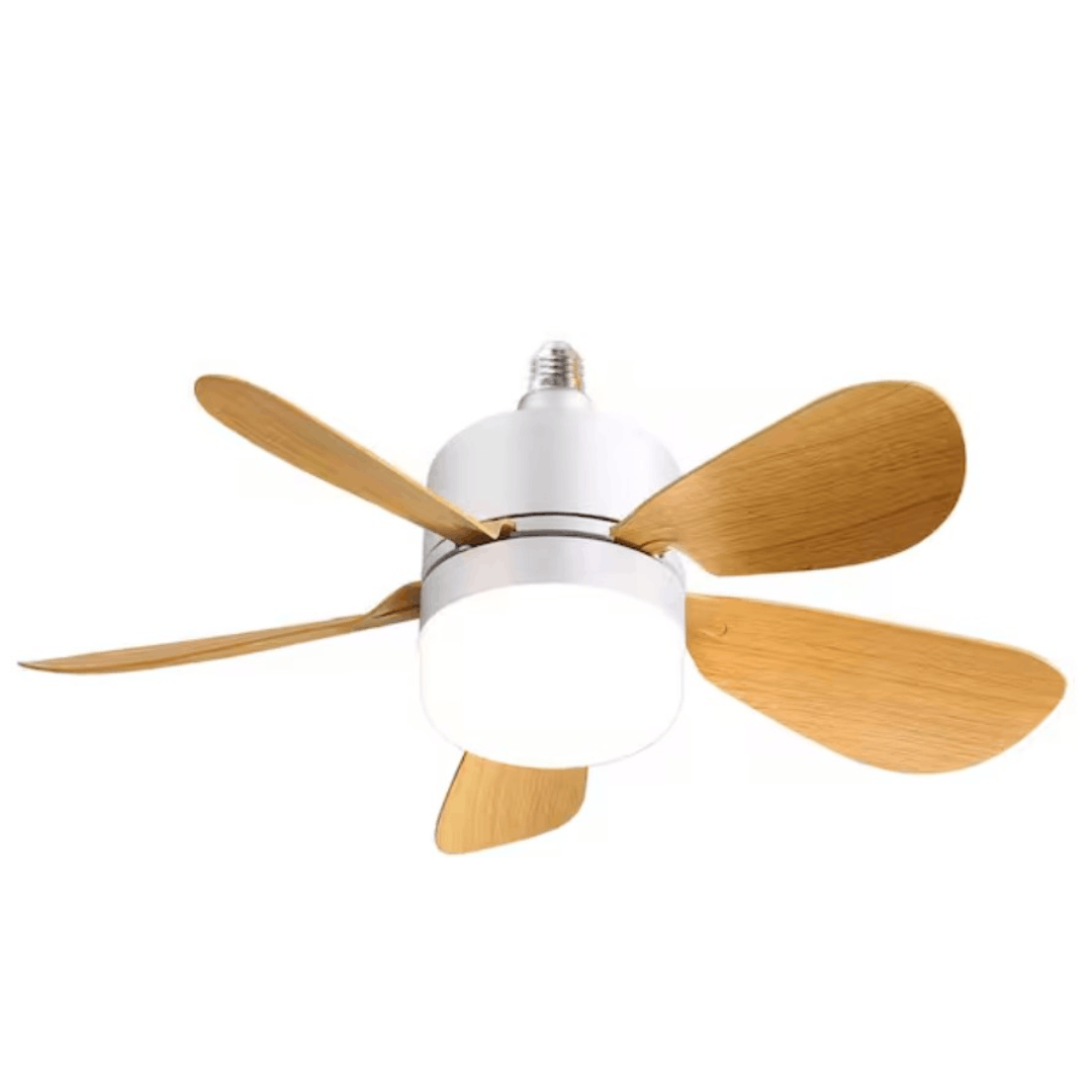 This 2-in-1 ceiling fan and LED light bulb is designed to enhance indoor comfort with efficient airflow and customizable illumination. It features 54 high-intensity LEDs delivering up to 1000 lumens, with five adjustable brightness levels and three selectable color temperatures (3000K to 6500K). The compact design screws directly into standard E26 sockets, eliminating the need for hardwiring. A high-capacity DC motor provides powerful, quiet air circulation. This fixture is ideal for small spaces such as laundry rooms, garages, or bathrooms, offering both lighting and cooling in a sleek, modern design.